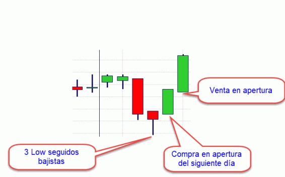 1-Condición de compra: Comprar acciones con 3 mínimos bajistas