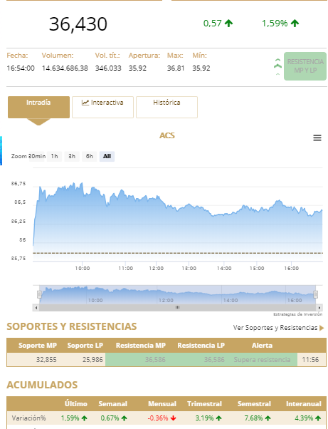 Además, gracias a esta nueva herramienta de análisis técnico, en la ficha de los valores también se verá, además de su cotización, los soportes y resistencias a medio y largo plazo.