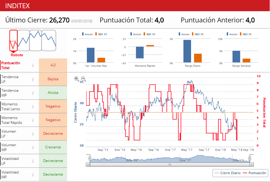Filtros técnicos de Inditex a 3 de MAY18