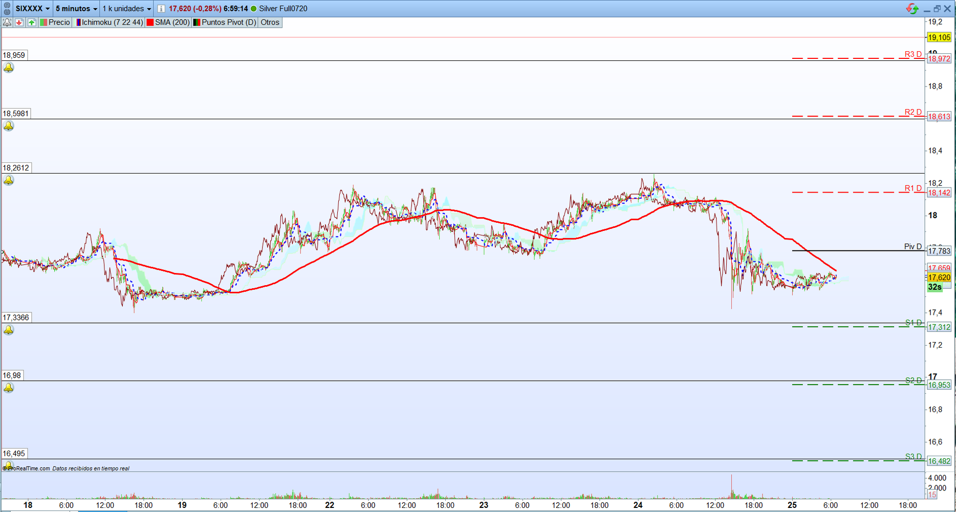 Futuro de la Plata: ¿Qué zonas son operables hoy en el CP?Mónica Triana García / Carlos Gil Barceló. Analistas de tradingEl Futuro de la plata está cotizando en estos momentos en 17,620. Está en un lateral amplio del que debe salir antes de trabajar.