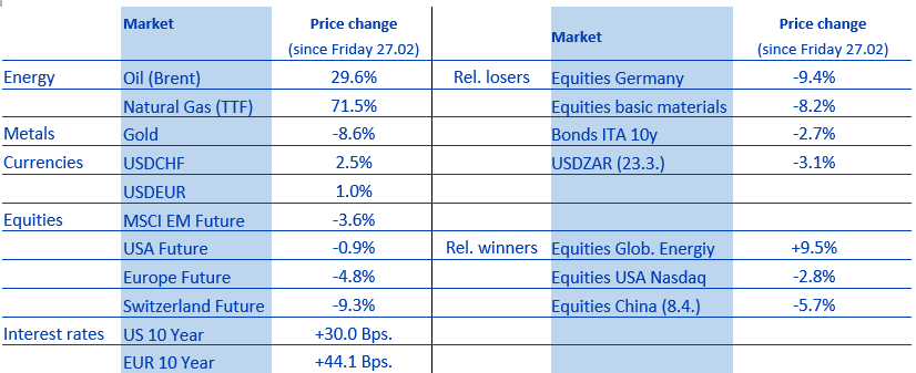 Como resultado, pudimos recuperar una parte significativa del bajo rendimiento de marzo en la primera semana de abril y ahora estamos aproximadamente de nuevo en línea con el índice de referencia en lo que va de año. Actualmente, no son necesarios ajustes en la cartera; estamos bien posicionados para un escenario de desescalada. Además, es probable que los indicadores fundamentales vuelvan a ocupar el centro de atención. El viernes se espera que los datos de inflación de EE. UU. aumenten, pero anticipamos solo un incremento moderado del +0,2% intermensual en la inflación subyacente. La próxima semana comenzará la temporada de resultados del primer trimestre, con un aumento de beneficios muy sólido esperado en EE. UU. de alrededor del 17% en comparación con el año anterior.