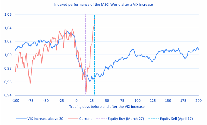 Una vez más, se pone de manifiesto que los mercados geopolíticos tienen poca capacidad de resistencia. Nuestra compra de acciones a finales de marzo fue muy oportuna, aunque la velocidad de la recuperación ha sido sorprendentemente alta. Los temores inflacionistas, al menos en EE. UU., han vuelto a remitir, y los inversores esperan de nuevo nuevos recortes de los tipos de interés por parte de la Reserva Federal estadounidense.