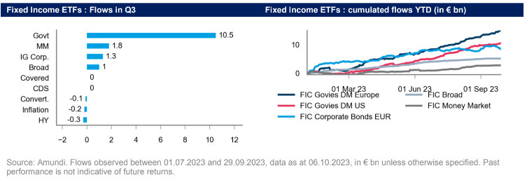 En el mercado europeo, las mayores entradas en el 3T23 fue en renta variable, con lo que en el año siguen superando ligeramente los flujos hacia la renta fija. Los ETFs europeos de renta variable UCITS captaron 7.300 millones de euros en septiembre, elevando las entradas en el tercer trimestre a 20.500 millones de euros, de acuerdo al análisis de flujos de mercado de Amundi AM ETF.
