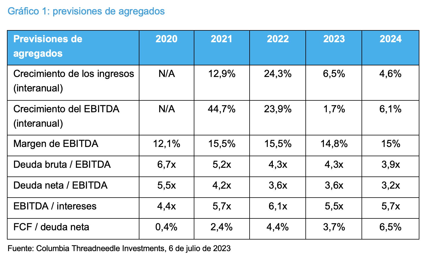 Se espera que el flujo de caja libre (FCF) y la cobertura de intereses seguirán siendo sólidos a lo largo de 2024, aunque podrían sufrir cierto deterioro en lo que queda de 2023 debido a los mayores costes de financiación. Sin embargo, en líneas generales, el impacto de las subidas de tipos de interés sigue siendo relativamente modesto, dadas las estructuras predominantemente a tipo fijo o con cobertura.