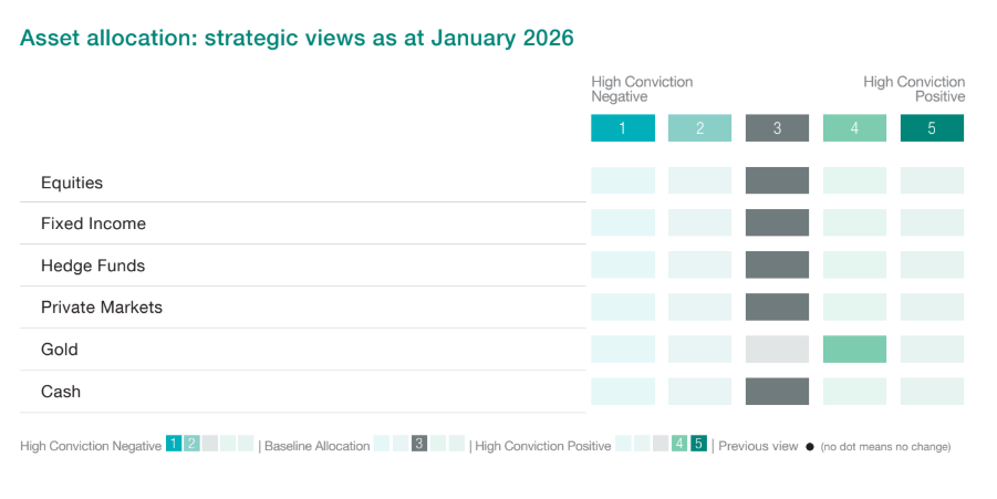 La plata se disparó la semana pasada hasta niveles superiores a los 103 USD por onza. El bajo ratio oro/plata y su nivel extremadamente elevado de volatilidad nos generan cierta preocupación. Consideramos que la narrativa de mercado sobre la escasez física es exagerada y, en consecuencia, mantenemos una postura cautelosa respecto a la plata en los niveles actuales.