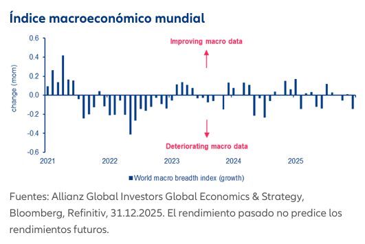 La economía mundial entró en 2026 tal y como terminó el año anterior: bajo presión, pero en general estable. Diversos datos sugieren que el crecimiento convergerá gradualmente hacia su potencial en los próximos trimestres, una valoración respaldada por nuestro indicador macroeconómico propio, que agrega más de 350 series de datos regionales y nacionales (véase nuestro gráfico de la semana). Dicho esto, el impulso económico sigue siendo desigual. El ritmo de desaceleración varía según las regiones y las perspectivas siguen siendo vulnerables a perturbaciones repentinas que podrían cambiar rápidamente la dirección del viaje.