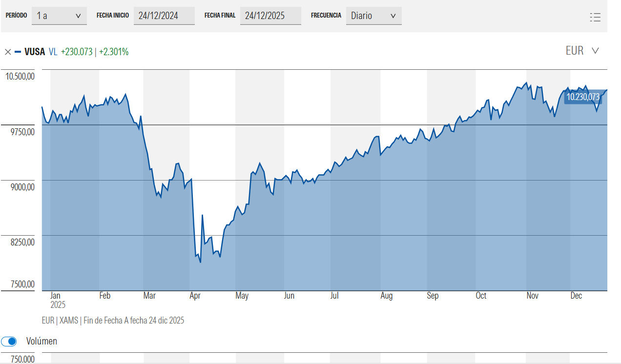 Durante 2025 ha ofrecido a los inversores una exposición directa a la rentabilidad de las principales compañías estadounidenses, incluyendo tecnológicas y cíclicas que han liderado el rally del mercado.