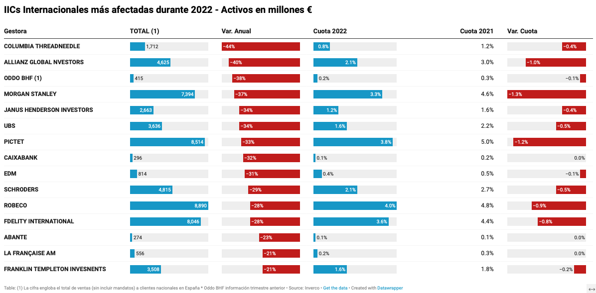 ¿Cuáles fueron las gestoras internacionales más afectadas en 2022?